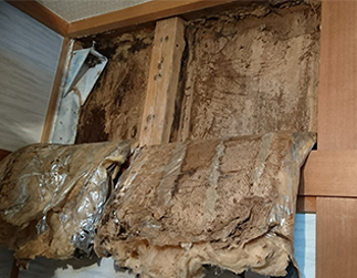 数年前の雨漏りのときに他の業者さんに原因調査をしてから防水対策をしてもらったので安心していたのですが、最近の豪雨でまた雨漏りしてきました。そこで優工業さんに点検してもらうと、かなり以前から雨漏りは続いていて、しかも防水工事をしてもらったところ以外の箇所からも雨漏りしているとのこと。