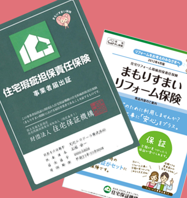 修理・補修の施工保証を工事内容、仕様に応じて保証書の発行を行っています。●リフォーム工事瑕疵保険の手続き代行