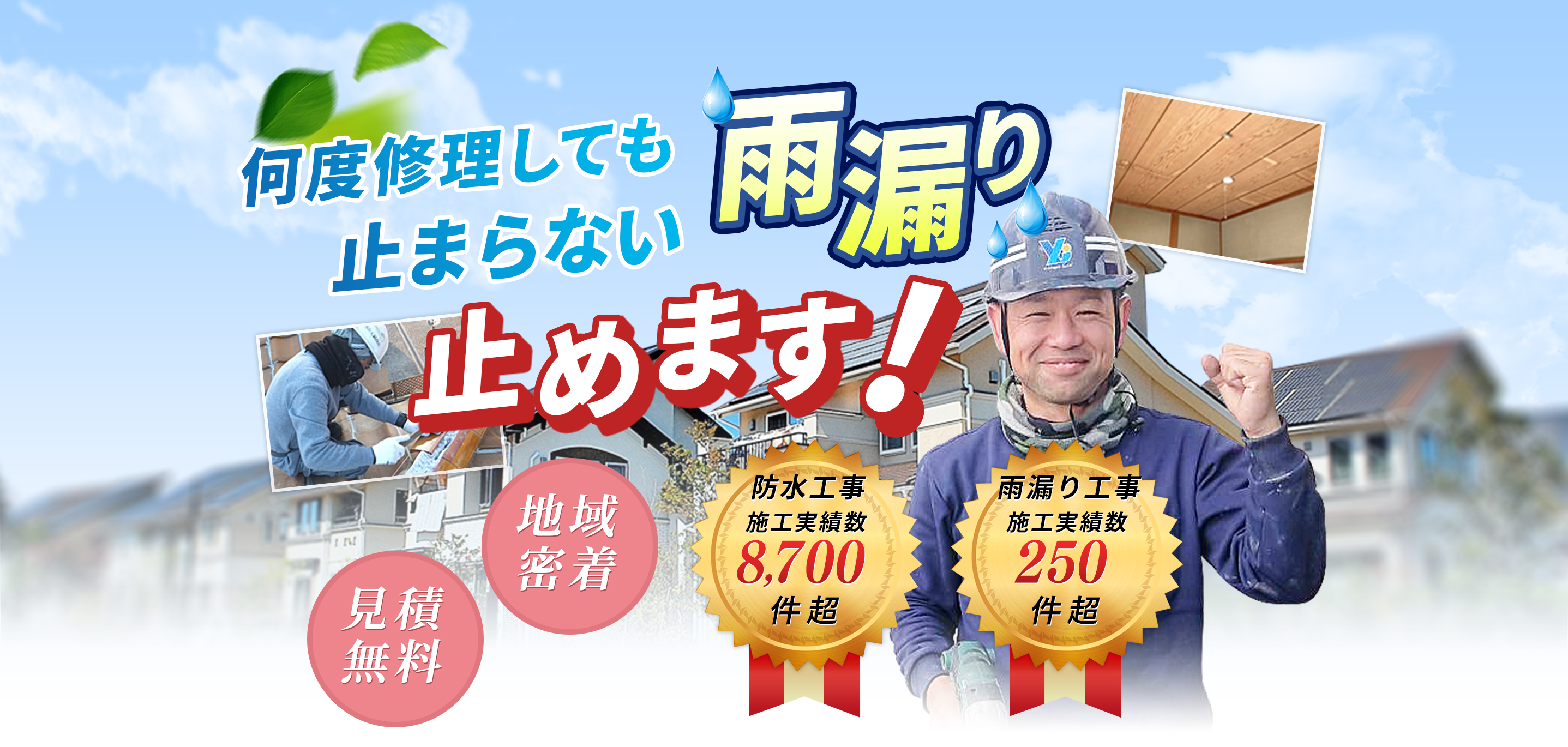 | 技術者・技能者 | 二級建築施工管理技士(2名)/一級防水技能士(3名)/雨漏り診断士(3名) |
